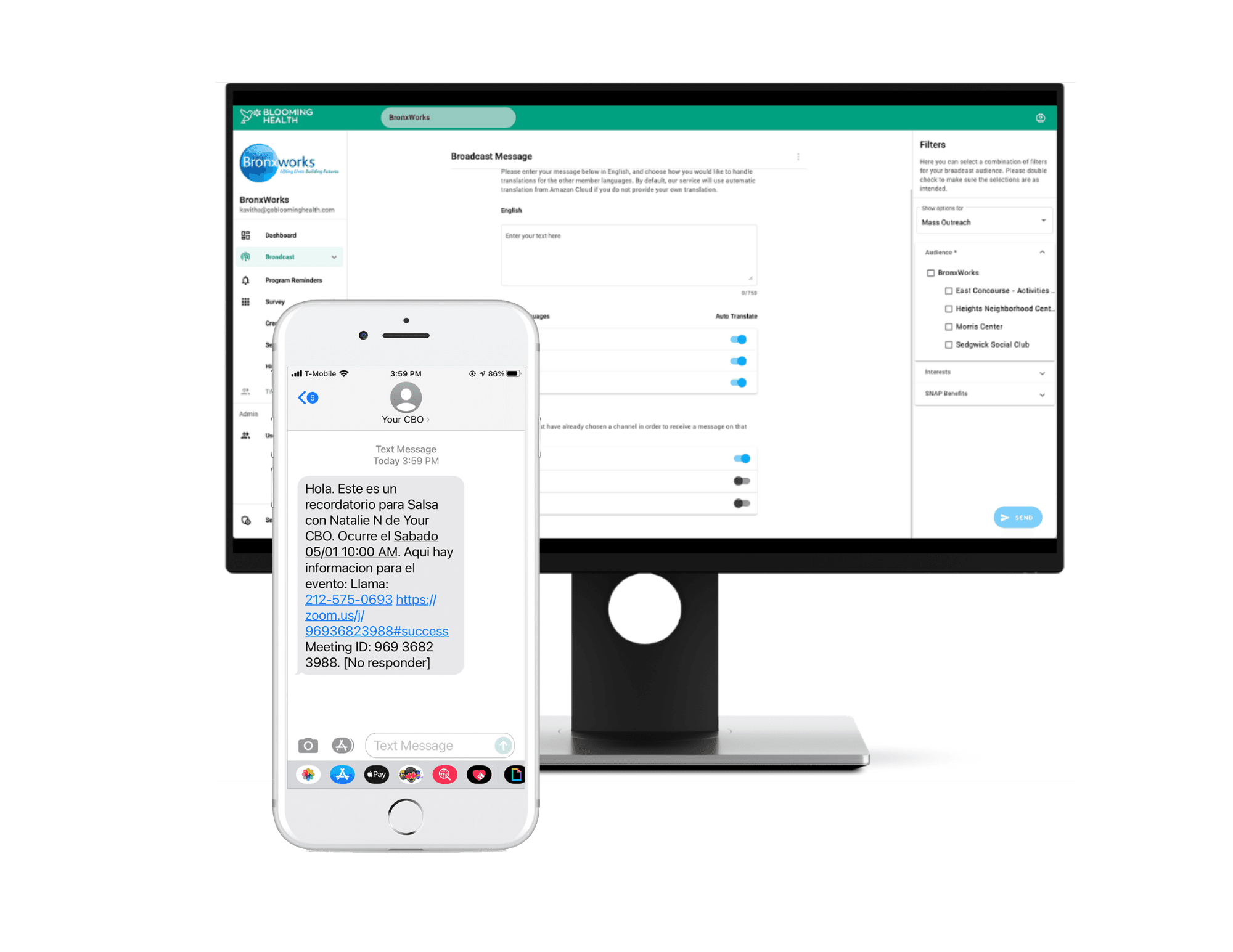 Blooming Health empowers organizations to seamlessly connect with their communities through a powerful AI-assisted engagement platform, ensuring every message is personalized and effectively delivered, regardless of age, communication method, or language.
